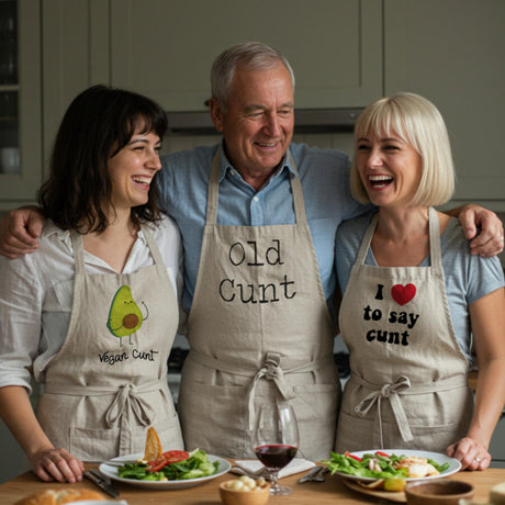 packed with hilarious, hard-wearing designs that are perfect for cooking up laughs in the kitchen, garden, or even at the BBQ.