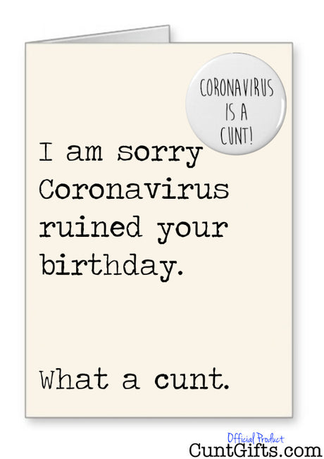 "Coronavirus ruined your Birthday - what a cunt" - Birthday Card