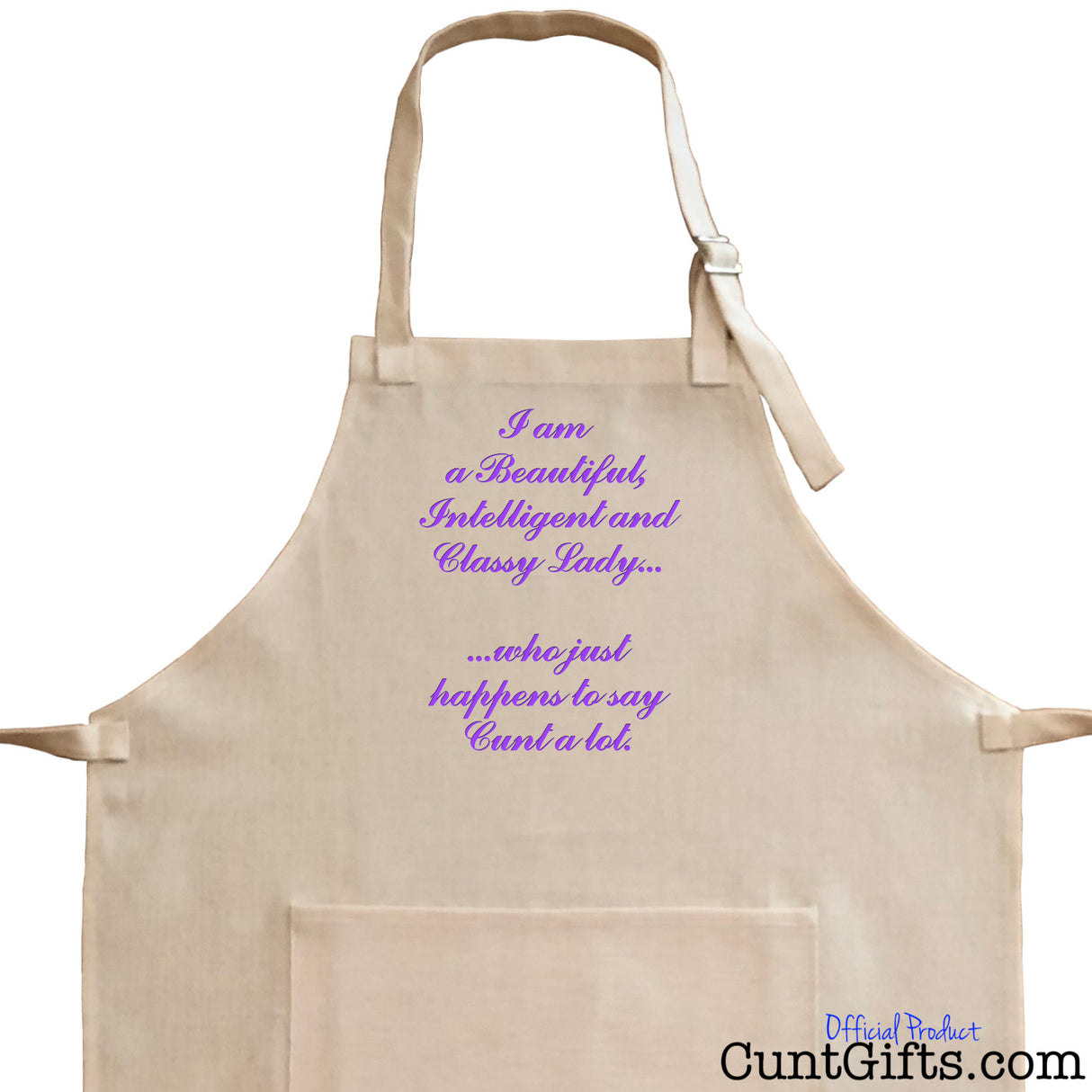 There’s not much more to say, is there? If this design instantly reminds you of someone, chances are she’ll love wearing this Classy Lady cunt apron while cooking up a storm.
