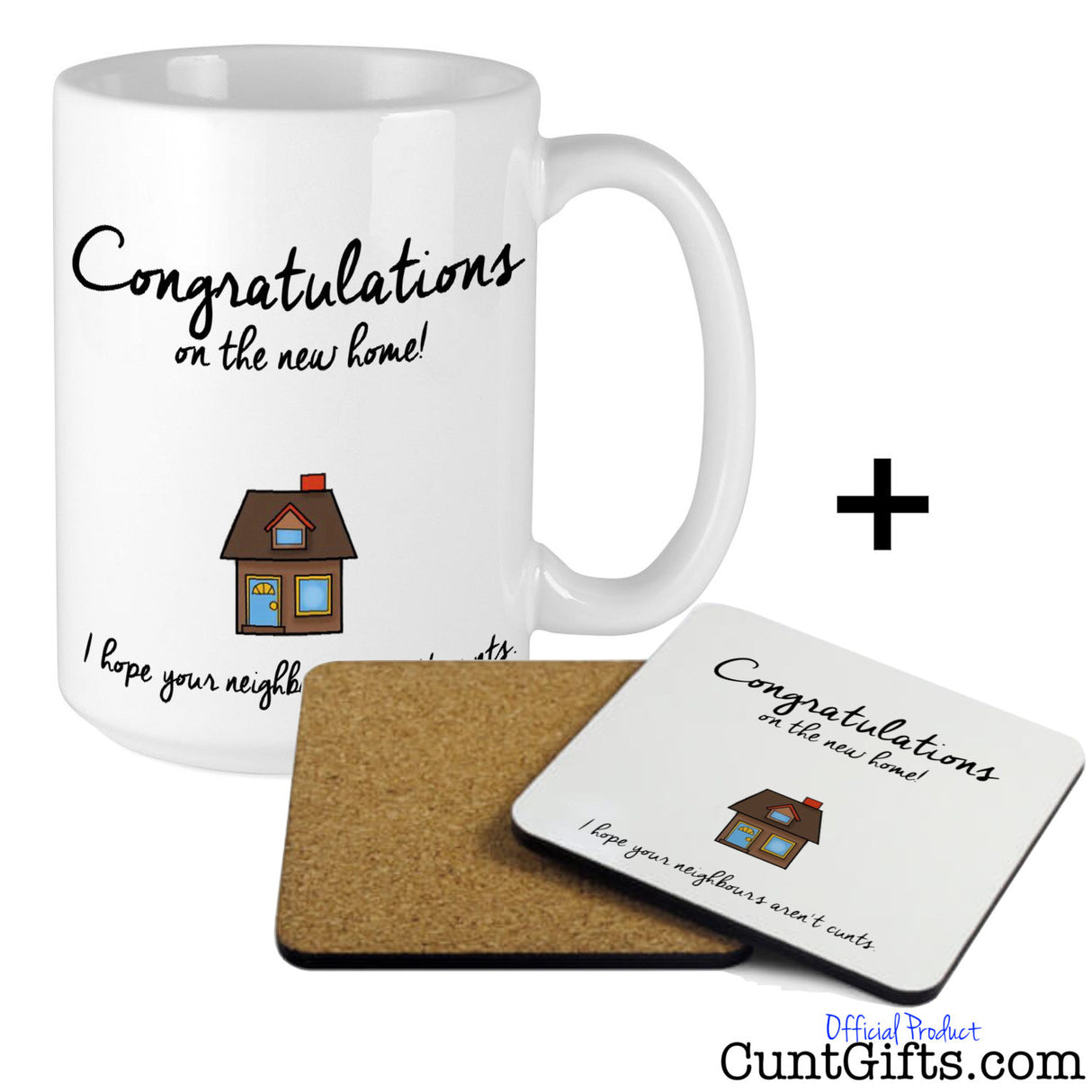 This mug reads: "Congratulations on the new home, I hope your neighbours aren't cunts" — and let’s be honest, it’s a genuine concern. A brilliant gift for anyone settling into a new place, especially if they’ve got a sense of humour and a low tolerance for nonsense next door.